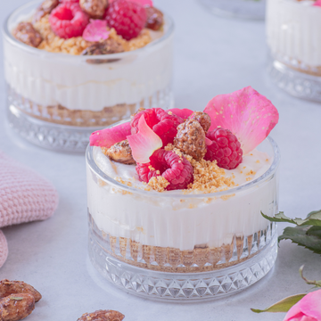 Dieser No Bake White Chocolate Cheesecake im Glas ist das perfekte Dessert, wenn es schnell gehen soll und trotzdem beeindruckend aussehen darf. Die Kombination aus cremiger weißer Schokolade, luftigem Frischkäse und einem knusprigen Keksboden mit aromatischen Rosenmandeln von Seeberger macht jedes Glas zu einem kleinen Genussmoment. Frische Himbeeren sorgen für eine fruchtige Note – ideal für besondere Anlässe, gemütliche Abende oder als süßer Hingucker auf jeder Tafel.
